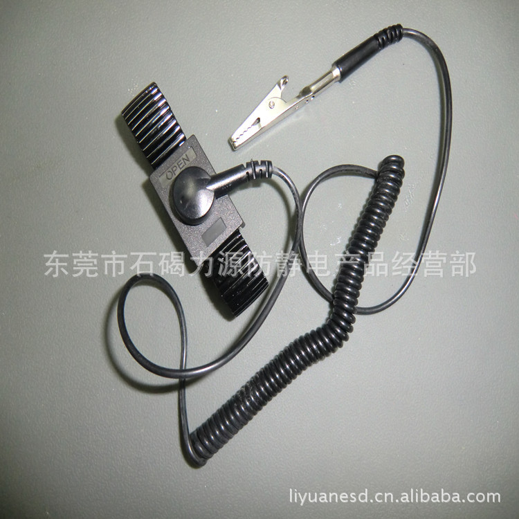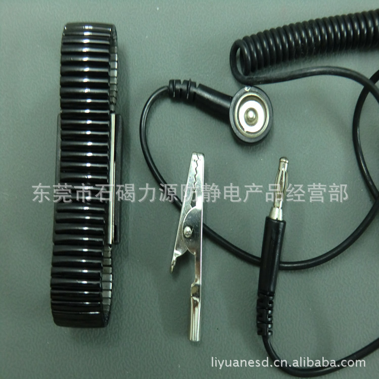 防静电手腕带分为有绳手腕带、无绳手腕带及智能防静电手腕带,按结构分为单回路手腕带及双回路手腕带,它用以泄放人体的静电。它由松紧带、活动按扣、弹簧软线.保护电阻及插头或夹头组成。松紧带的内层用防静电纱线编织,外层用普通纱线编织。