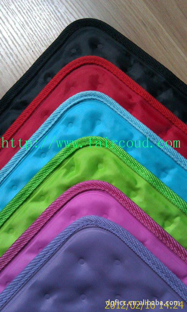 1、外部材料:产品外部采用单面热传导高技术面料,同时具有防水、抗撕裂、不刺激人体皮肤、清洗方便的特点。产品背面的防滑布料具有更强的摩擦力,有效防止因笔记本电脑在使用过程中产生的滑落,碰撞。(产品颜色有:红、黑、灰、白等,也可以依客户需要生产)
