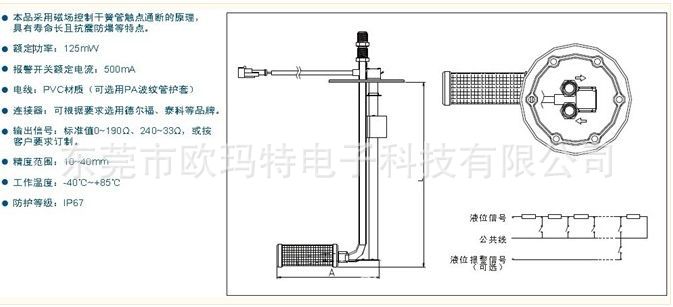 MTN系列产品可根据油箱的实际形状来完成油箱油量的测量,传感器的测量由位于液位管中的磁簧开关完成.应用范围:主要应用于轻卡,巴士,游艇及工程设备油箱,起探测液位及吸回油功能.主体采用不锈钢材质制作.接头:供/回油管接头为凸包型,也可选择带螺纹的接头型或带SAE快速接头型,接头方向可按客户要求定制.长度范围:150-700mm装配方式:采用齿形卡口,标准5孔或标准6孔法兰锁紧,亦可按客户要求固定.