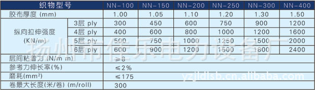 6、由于相对棉帆布输送带的层数有了较大的减少,其单位长度重量减少,可降低能耗;