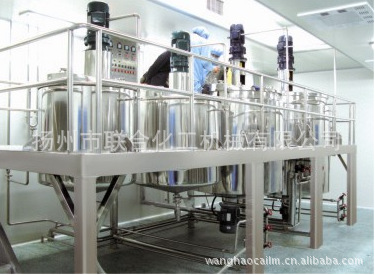 反应搅拌罐(搅拌锅)是日化行业中必不可少的设备,它使用于不同物料的混合搅拌,如生产洗发水、沐浴露等粘液的互混,溶解,均匀混合的搅拌等,是日化行业的理想设备。生产能力可达20-100T/天。