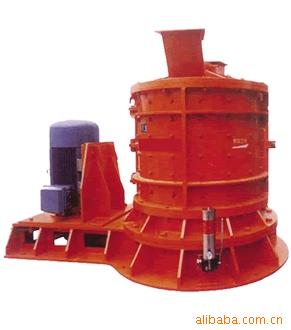 物料由机器上部垂直落入高速旋转的叶轮内,在高速离心力的作用下,与另一部分以伞状形式分流在叶轮四周的物料产生高速撞击与粉碎,物料在互相撞击后,又会在叶轮和机壳之间以物料形成涡流多次的互相撞击、摩擦而粉碎,从下部直通排出,形成闭路多次循环,由筛分设备控制达到所要求的成品粒度。