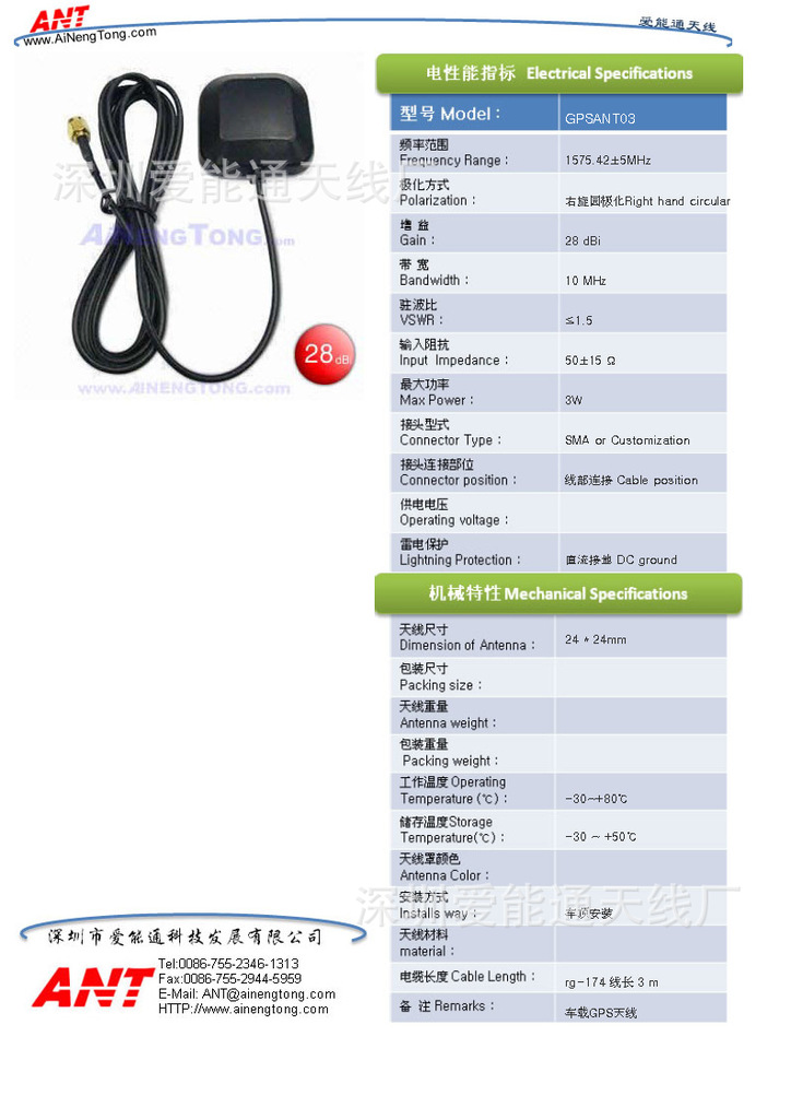 GPS天线 GPS有源天线 GPS陶瓷天线 GPS ANTENNA 28DB