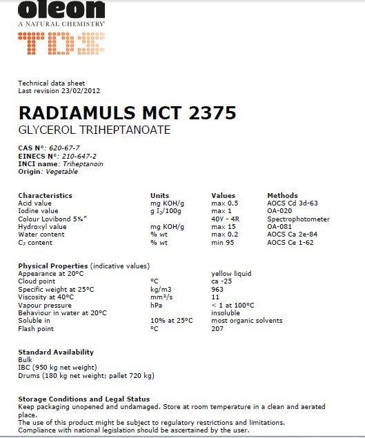 供应OLEON (欧荔安)R2375三庚精(庚酸三甘油酯)