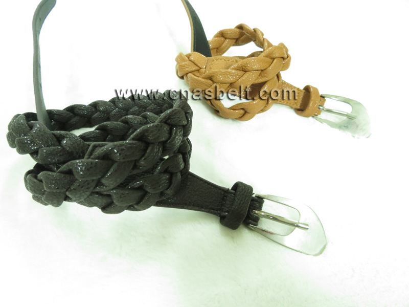 时尚PU编织腰带/皮带 2cm 驼色&棕色