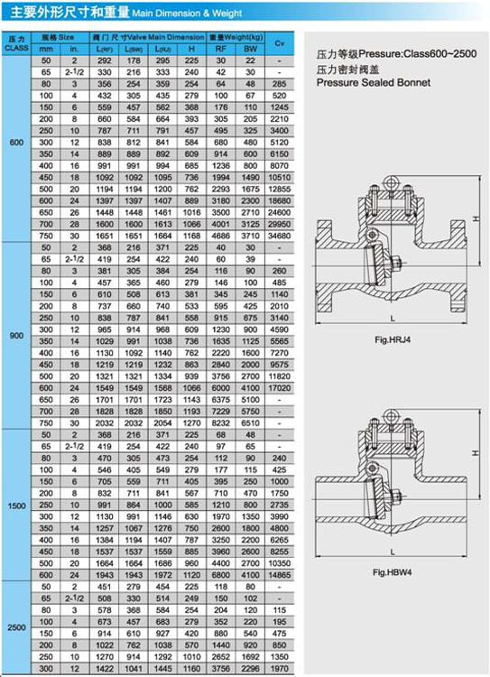 概 述 止回阀安装在管路系统,其主要作用是防止介质倒流,止回阀是一种依靠介质压力开启和关闭的自动阀门。 以往国内普遍采用的是H44型法兰连接旋启式止回阀和H41型法兰连接升降式止回阀,这种传统的止回阀体积笨大,流体阻力大,阀门关闭时水锤压力高,安装、维修难,使用寿命短。 我公司针对传统结构止回阀存在的问题,以美国API标准和德国DIN标准为依据,结合我公司多年来在阀门试验研究、开发设计、加工制造等方面的丰富经验,研制开发了H76型对夹双瓣旋启式止回阀和H71型对夹式升降式止回阀系列产品,经石化、冶金、电力、轻工、食品等行业的企业和设备配套厂家的多年使用,效果良好,深受用户好评。 结构特点 1、结构长度短,其结构长度只有传统法兰止回阀的1/4~1/8; 2、体积小、重量轻,其重量只有传统法兰止回阀的1/4~1/20; 3、阀瓣关闭快速,水锤压力小; 4、水平管道或垂直管道均可使用,安装方便; 5、流道通畅、流体阻力小; 6、动作灵敏、密封性能好; 7、阀瓣行程短、关阀冲击力小; 8、整体结构、简单紧凑、造型美观; 9、使用寿命长、可靠性高。用 途 对夹旋启式止回阀适用于公称压力PN1.0MPa~42.0MPa、Class150~2500;公称通径DN15~1200mm、NPS1/2~48;工作温度-196~540℃的各种管路上,用于防止介质倒流。通过选用不同的材质,可适用于水、蒸汽、油品、硝酸、醋酸、强氧化性介质及尿素等多种介质。
