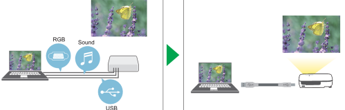 1、三合一 USB投影(USB B口连接) 通过一根USB线就可以实现图像及声音的传输,还可用作控制鼠标运行,省去复杂的各种连接线。