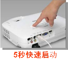 7、高效功能组合 5 秒快速启动,1 秒自动梯形校正,水平梯形校正滑钮,以及0 秒关机的高效组合。