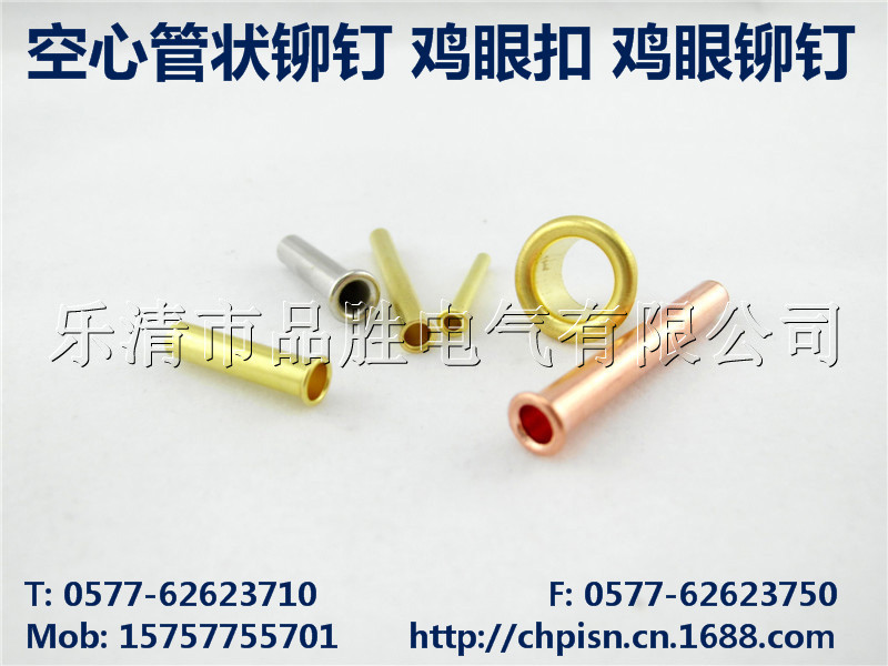 厂家直销——空心铆钉 鸡眼铆钉 管状铆钉 半空心铆钉 台阶铆钉 沉头铆钉 半圆头铆钉 平头铆钉 子母铆钉 实心铆钉 1、非标定做:来图来样,均可定制——定做定金加工,款到发货; 现货:现金结算 2、可随时依照你的产品需要变更规格大小。 3、材质:黄铜管、紫铜管、铝管 4、表面处理:酸洗、镀银、镀镍、镀锡…… 5、公司热线:0577-62623710 手机:15757755701(24小时) 公司主页:http://www.chpisn.com 诚 信 通:http://chpisn.cn.1688.com 有库存现货——∮3.9×0.4×8.5 有库存现货——∮5.9×0.4×7.0 |