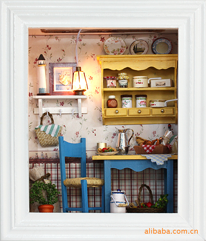 一个晴朗的开心假期,清晨的时候,带着篮子去海边上的小镇买点杂货,随意地摆进框子里去,