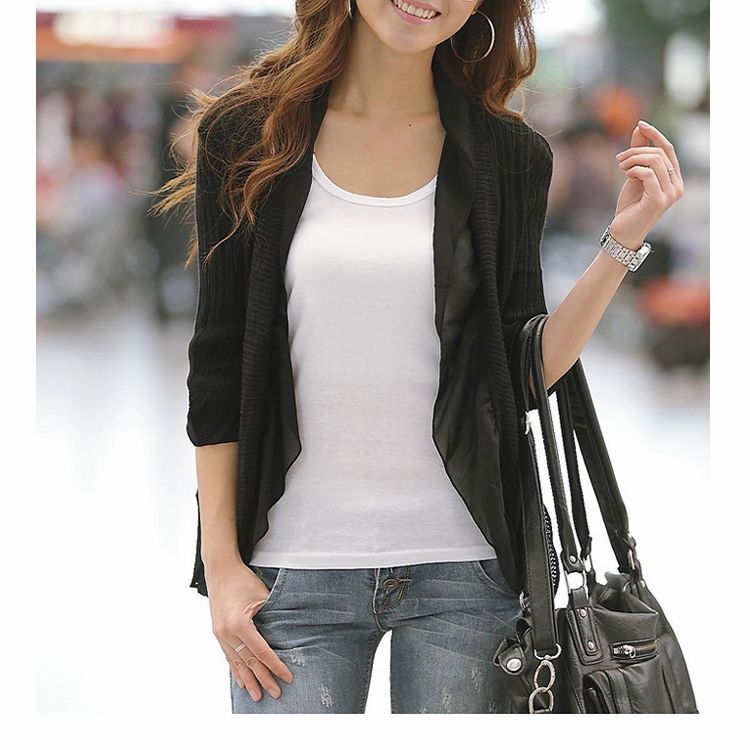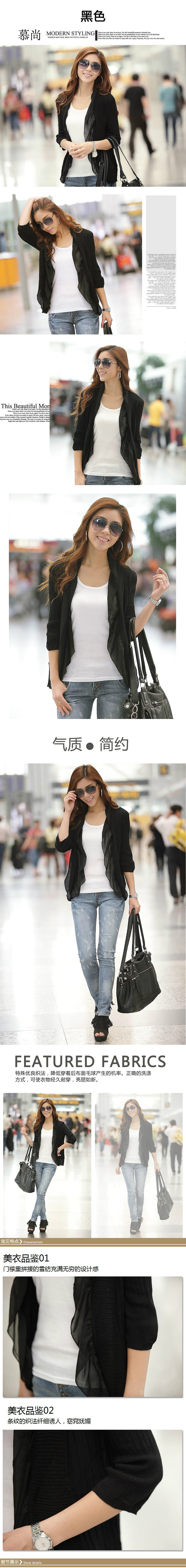 2013春夏秋装新款韩版五分袖 雪纺弹力针织开衫 女宽松外套批发
