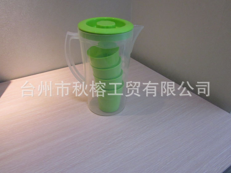 产品说明:大容量可以让您随心所欲地畅饮,减少频频续水的繁琐。一个水壶内含4个水杯的统一造型简洁、易于收纳及携带,家庭、旅游等场合均可使用