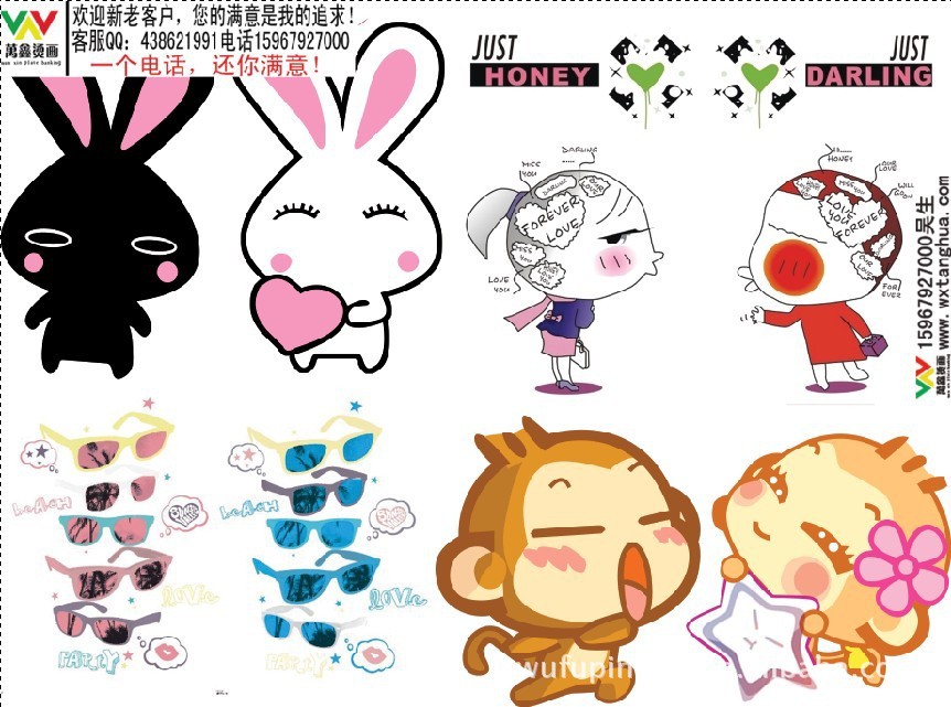 我们承诺 :本公司严格按照客户提供品质要求生产,在保证品质的前提下短交期。 若需提供高清热门图案请联系客服QQ:438621991 附:部分 烫画效果图片