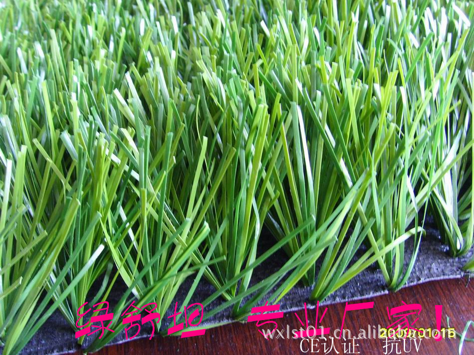 无锡绿舒坦人造草坪有限公司是专业生产人工草皮的厂家,公司最新引进了4M宽幅全新簇绒机械和先进的后整理设备,该生产线全电脑控制,切割精度高,簇绒匀称,一致性好,可生产草高15mm~75mm(任意可调)、宽幅4.2m、长度可达100m等不同规格的人造草坪。后整理设备采用全自动机器涂胶,高温蒸汽渗胶烘干定型,确保生产的人工草皮耐高温高寒、不易变形、使用寿命更长。