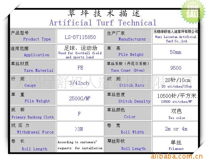 无锡绿舒坦人造草坪有限公司是专业生产人工草皮的厂家,公司最新引进了4M宽幅全新簇绒机械和先进的后整理设备,该生产线全电脑控制,切割精度高,簇绒匀称,一致性好,可生产草高15mm~75mm(任意可调)、宽幅4.2m、长度可达100m等不同规格的人造草坪。后整理设备采用全自动机器涂胶,高温蒸汽渗胶烘干定型,确保生产的人工草皮耐高温高寒、不易变形、使用寿命更长。 主要人工草皮产品有休闲和运动两种,国产主要是采用台湾合资的草纤维、进口的全部采用享誉世界,品质优异的英国博纳草纤维,充分保证产品品质的优异和稳定。绿舒坦人造草在抗紫外线、抗老化、耐磨损、安全环保、运动特性等主要指标方面都优于同类产品。 公司生产的优质人工草皮,被广泛应用于建设各类学校和体育场馆的田径场、足球场、网球场、篮球场及其它多种频繁使用的运动场地,创造安全、舒适、环保的运动场地。 公司还有一批具有八年以上专业从事人造草坪施工经验的铺装队伍,为你提供高标准的良好售后铺装服务。 “诚信、创新、进取”是我们始终不变的追求!