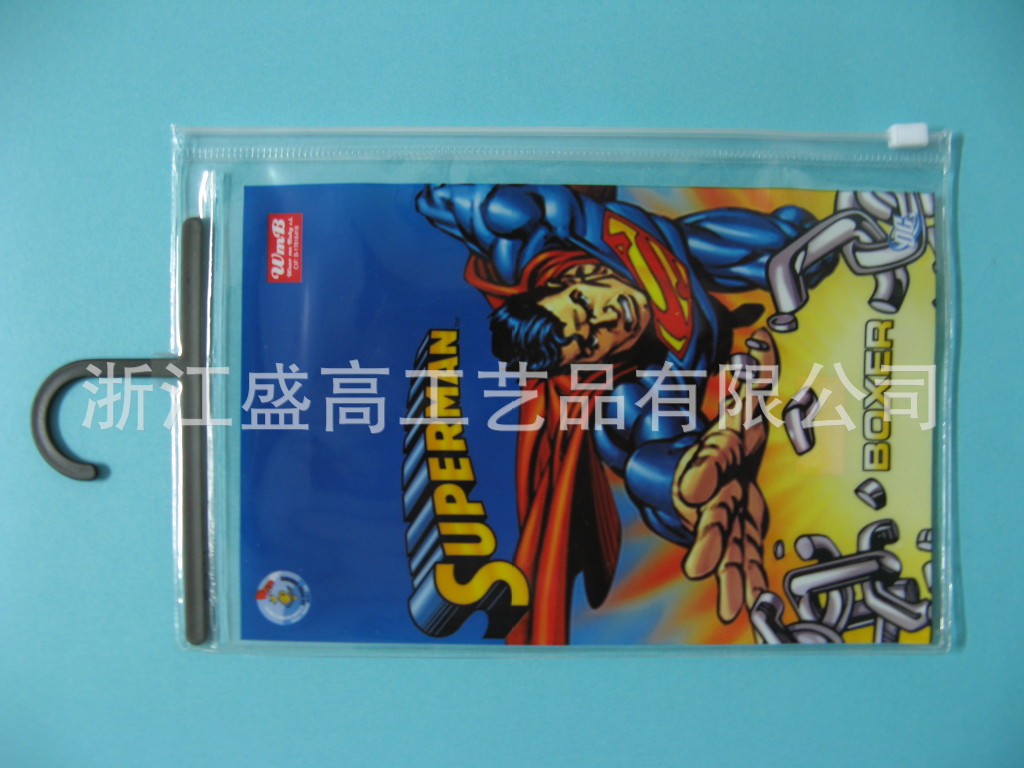 此类产品是用PVC或EVA软胶制成的产品。可根据客户的要求做成不同规格,形状的产品包装袋,再配上精美的印刷图案,使产品看上去美观大方(如PVC手提挂勾袋、PVC挂勾袋、PVC勾袋、PVC拉链挂勾袋,PVC服装袋、透明PVC挂勾袋等)。可用于玩具、制衣、化妆品、工艺品、礼品、医药等行业!
