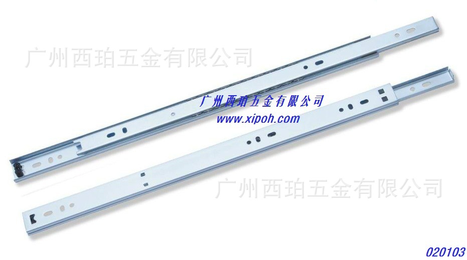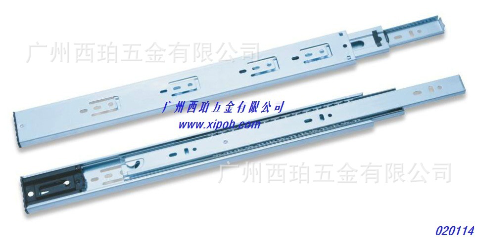 产品长度:18″(INCH)产品料厚: 1.2×1.2×1.5mm 1.2×1.2×1.2mm 1.0×1.0×1.5mm 1.0×1.0×1.0mm表面处理:蓝锌;黑锌;彩锌产品材质:冷轧板产品承重:45KG包装方式:1套一个塑料装;15套/箱拉伸测试:50000次我司其他款钢珠滑轨图片