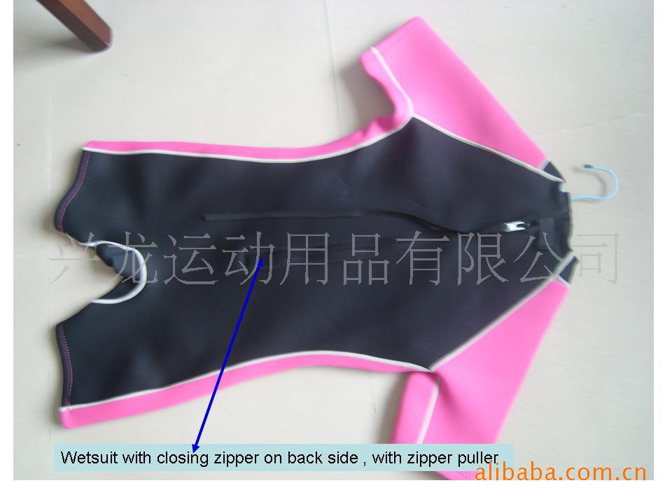 产品说明: 3MM短袖短裤,全身八针合缝,后背配一YKK拉链带手拉绳,颜色可自行调配,LOGO也可根据客人的要求来制作,潜水衣分长袖长裤及短袖短裤等,是根据人体的线条贴身设计,采用高质量海棉,保温材料主料制作,穿着时密合不紧配,运动自如,同时具有很好的保暖保温的效果,是水上运动的首先产品.