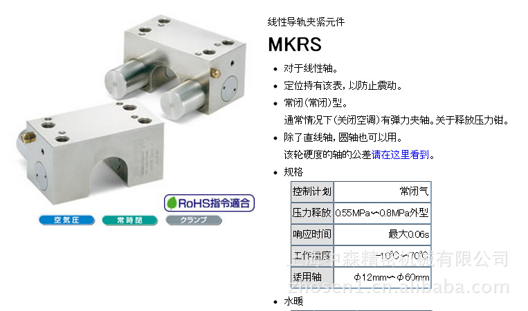 上海中森精密机械有限公司是日本NBK中国华东代理商,此次携手NBK向中国的广大用户推出新产品—直线导轨钳制器,其最新的设计思想,解决了直线导轨滑块的制动、刹车疑难问题。 ZIMMER导轨制动器,导轨刹车器,导轨库浪霸,Zimmer导轨钳制器,滑块刹车,滑块安全制动器,直线保持制动器,直线导轨制动器,直线制动器,直线刹车,直线电机刹车是针对目前市场上主流的导轨厂家(NB THK IKO NSK PMI HIWIN REXROTH INA ROLLON ABBA SCHNEEBERGER)适用导轨宽度3mm--125mm,适用光轴直径12mm--60mm)等开发出来的新产品最适合于滑台的固定,定位及防止振动,导轨刹车器的安全停止或防止Z轴的掉落等用途,也可使用为紧急用刹车等功能。