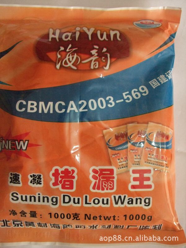 堵漏王是指一种高性能、集无机、无碱、防水、防潮、抗裂、抗渗、堵漏于一体的最新高科技产品.其最神的特性是:迅速凝固且密度和强度都远远高于现行高标号混泥土!它能在拌和后一分钟开始凝固,三至四分钟终凝,一天抗压强度便可达到25Mpa以上.还可以在潮湿基面上直接进行施工.用于抢险、道路恢复等,一小时就可恢复原状,四小时就可以通车;用于防水工程,带水带压,立刻止漏.本产品操作简单,仅加水调和即可使用,无毒、无害、无污染.可加入硅酸盐水泥调整缓凝时间.与建筑物同等寿命。