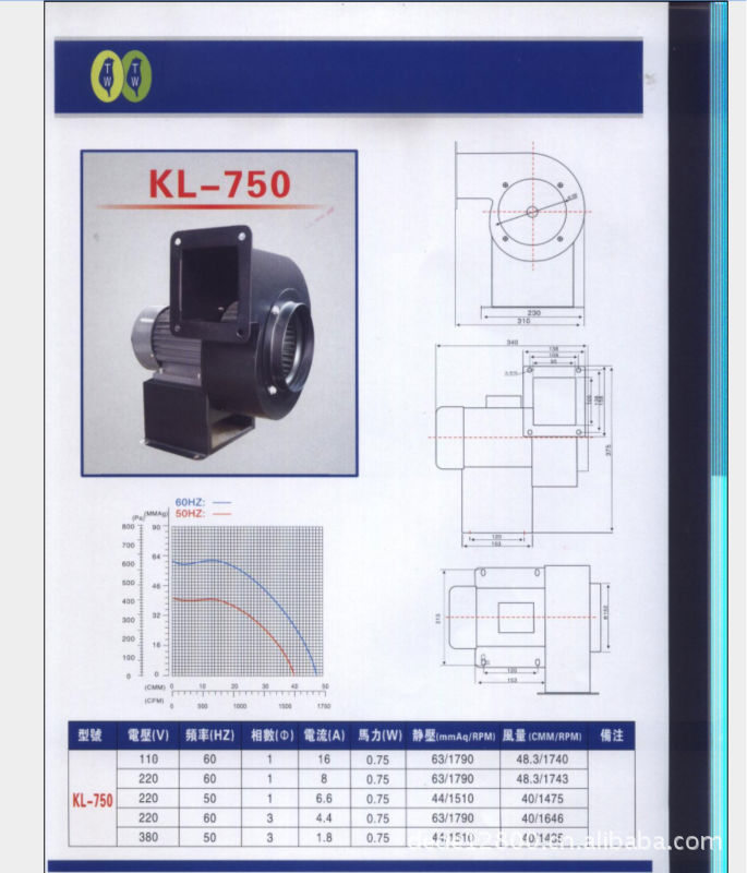 哲伟KL075型多翼式鼓风机运转平顺,结构稳定、外形美观、且风量大、震动小、噪音低,该产品广泛适用于各类机械之散热、干燥、送风,如塑料、铝材成型机、高周波机械、厨房油烟抽风设备、也可用于跳垫及广告拱门的充气等。