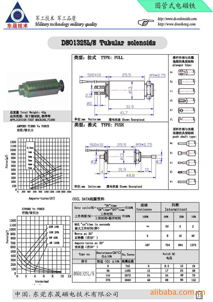 DSO1325-圆管式电磁铁(电磁阀/solenoid/螺线管)