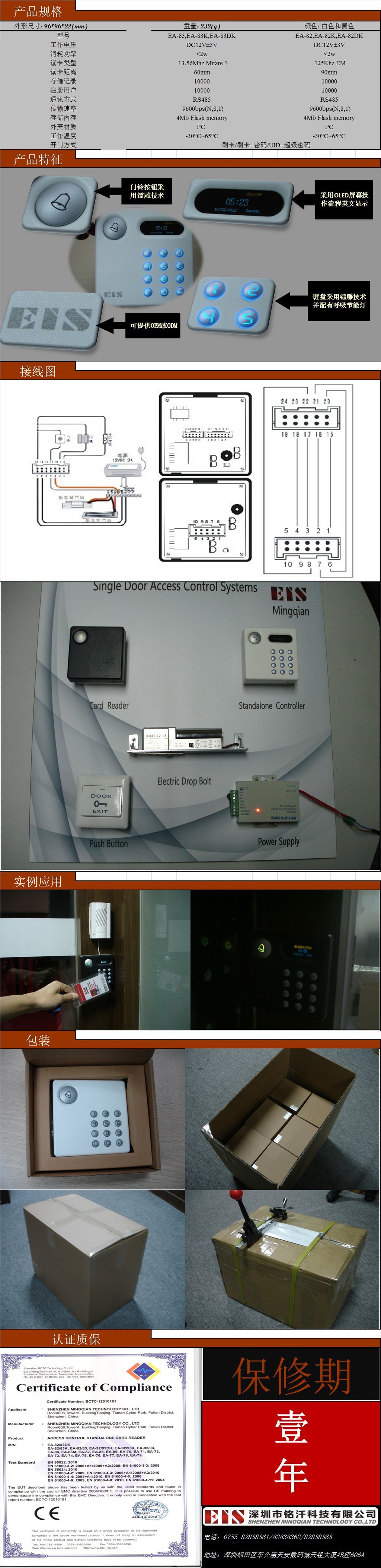 | 读卡频率: 125 KHz | 开门方式: 卡/ 卡+密码/ UID+密码/超级密码 |