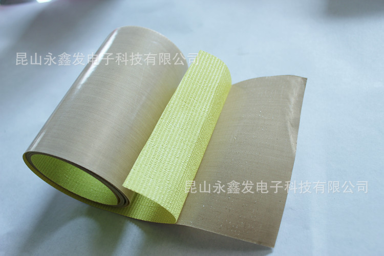 胶带是选用进口玻璃纤维编织的各种基布,再涂覆进口聚四氟乙烯。经过特殊工艺加工而成. 它是一种高性能,多用途的复合材料新产品。因其优异的各项性能,故被广泛应用在造纸、食品、环保、印染、服装、化工、玻璃、医药、电子、绝缘、砂轮切片、机械等领域。