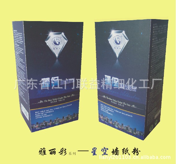 1、 植物原料:天然环保,先用优质马铃薯粉为原料制造,更环保,更健康 2、 粘力强、防霉变、防水化、采用先进铰链技术配方,性能更强、粘力更持久 使用方法: 1、 墙面必须干燥、平整、洁净无油迹。建议先使用基膜对墙体作防潮处理。 2、 开胶方法:在使用前请确保所有工具必须清洁。按下表的溶解配比,将清洁冷水倒入桶中,搅动清水并慢慢倒入特强墙纸胶粉,继续搅拌,直至胶粉充分分散,静置5-15分钟后再重新搅拌均匀以达到糊化完全的状态。此时,再按1盒粉加1罐特强墙纸胶浆的比例。将胶浆倒入胶液中,充分混合后即可使用。 3、 胶涂方法:用专用刷子将胶液均匀地涂于已裁好的墙纸背面,保证墙纸边缘也粘满胶液。将胶液的墙纸对折放置5-10分钟以使胶液充分浸润墙纸。 4、 粘合方法:装好垂直基准,依基准自上而下地粘贴墙纸,再用抚纸刷或刮板由上至下,从里到外地刷平墙纸,挤出气泡及多余的胶液,并立刻用干净毛巾擦净墙纸表面的胶液。 兑水比例 用途 | 加水量 | 可粘面积 | 普通墙纸 | 5L | 20-25m2 | 厚重墙纸 | 4L | 16-20m2 |