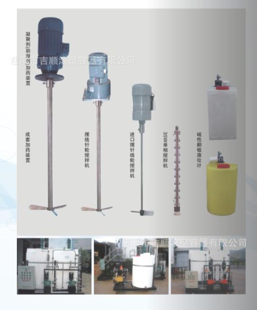 PE塑料加药箱它以优良的卫生综合物理性,丰富的内涵力学原理、无焊缝、一次成型、耐酸碱、耐碰撞、耐高温(80℃)、耐冷冻(-30℃)、内外光滑、抗强震、防紫外线照射使用寿命长、不长青苔易清洗、安装移动方便,具有安全便捷、无需维修等优点。同时顶部加装搅拌和计量泵加强筋设计。实用于水处理净化设备配套、环保、水软化系统、加药系统等行业的加药和软化。药箱可选配件有搅拌机和计量泵,特殊设计请提前告知。