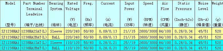 型号:SJ1238HA2 电压:220/240V 50/60HZ 电流:0.13A
