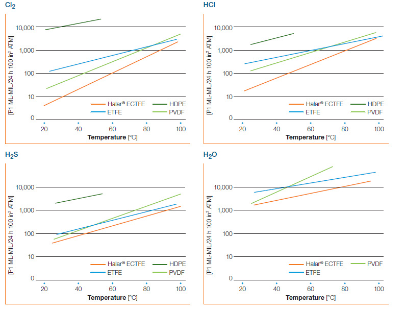乙烯-三氟氯乙烯共聚物 苏威HALAR®ECTFE(F-30)英文商品名:Halar ECTFE(poly(chlorotrifluoethylene-ethylene))特性简介: HALAR®ECTFE(F-30)是由乙烯与三氟氯乙烯以等摩尔比共聚制得的交替共聚物。具有优良的化学稳定性和不燃性,以及良好的电性能和机械性能,而且可用一般热塑性塑料的成型方法加工。长期使用温度为-50~170℃,热分解温度300℃以上,硬度、表面光滑度、抗渗透性及耐火焰能力较ETFE好。可广泛应用于电子和医药行业无尘无菌风管的内外喷涂,以及化工和其它行业防腐设备和管道的防腐处理。 1、优秀的耐化学系:工业上常用的化学试剂几乎都不能对Halar产生任何影响。Halar能抵抗的化学品包括:强无机酸、强碱、金属刻蚀剂、液氧、除热胺类(如苯胺、二甲胺)以外的所有有机溶剂。 2、更高的硬度:更高的表面硬度提供更好的耐磨性(比如在使用中不断受固体颗粒或盐的沉积和摩擦),更好的耐划伤性(比如在安装过程中避免损坏),这使ECTFE的安全系数更高。在安装和运输过程中,减小意外破坏的可能性,降低保养成本。 3、光滑度:无论是粉末喷涂、挤出成型还是模塑成型的Halar ECTFE表面都特别光滑,这点可由扫描电镜或原子力电镜证明。表面更光滑的优点:减少图层中出现针孔的可能性;抑制固体颗粒和金属盐的堆积和防止堵塞,大大优于PP、PVC或FRP管路;减少生物膜和细菌的形成,这点也可通过生物膜实验结果与电抛光的不锈钢和其他含氟化合物的对比进行证明。 4、耐高低温性:可在此-50℃至150℃之间使用,短时间170℃至180℃也可以使用。 5、抗粘性:几乎所有物质都不能与ECTFE涂层粘合,有着这样稳定的性能,所有在很多方面都有用到它,例如:工业界模具、印染机械等防粘、易脱模、易清洁的性能。 6、耐磨损性:具有低摩擦系数及良好的自润滑性,适用于汽车工业部件、石油钻探行业、以及工业界各行业的自润滑工件。可节约能耗,降低噪音,提高效率。 7、电器绝缘性:具有极佳的绝缘阻抗性能,用于包装机械、纺织业等。 8、优良的抗渗透性:Halar的成功也归功于它出色的抗渗透性(如水蒸气、氧气、酸、氯等),这也使它成为医疗设备、化工行业和半导体行业中的防腐保护材料。 9、防爆、防静电:因为成膜后的涂层有着很强的韧性和拉伸强度,所以是防爆场合理想的选择。因为表面喷涂成膜后形成一种不粘效果,所以表面几乎无法产生静电,广泛用于易燃易爆的场合。 10、阻燃性:与其他热塑性材料不同,当Halar被放置于火焰之上时,不会熔化或滴落,会立刻烧成炭,炭化作用阻止火焰的传播,起到对氧气和热的阻隔作用。 11、超高的纯度:Halar经在超纯水或高纯化学品的静态浸泡测试、动态冲洗数据和超低氟离子析出测试后都表面极低的金属和有机物析出,使Halar ECTFE适用于半导体和生物科技工业的高纯系统中。 12、除了对多种化学品很强的耐性外,E-CTFE还显示出在高温下很强的耐磨性、耐冲击性和韧性,以及完全的真空耐性(例如优良的附着力)等方面优良的抗机械破坏的品质。 HALAR®ECTFE(F-30)现已广泛应用于: 化学加工行业,医药加工行业,半导体加工厂,精细化工厂,电厂,强腐蚀环境,超纯化学品存贮和运输,制浆与造纸工业,食品工业等。 HALAR®ECTFE(F-30)应用实例包括: 容器、反应器、模具、管道系统、泵、阀、离心机、排风罩、过滤器、碱收集器、电镀装置、涡轮、半导体用化学品存贮罐、无菌无尘通风管路、金属酸浸槽、电镀槽、化工机械、电镀加热管、半导体风管、易燃易爆场合等。 HALAR®ECTFE(F-30)主要性能如下: 粒径:80微米; 比重:1.68 相对密度 | 软化温度 | 连续使用温度 | 耐化学腐蚀 | 洛氏硬度 | 1.68-1.70 | 235-245℃ | -30-170℃ | 优良 | R93 | 伸长率 | 线膨胀系数 | 弯曲强度 | 拉伸强度 | 介电常数 | 200-260% | 8.0×10-5/℃ | 48MPa | 31.4-49.0MPa | 2.6-2.8 |