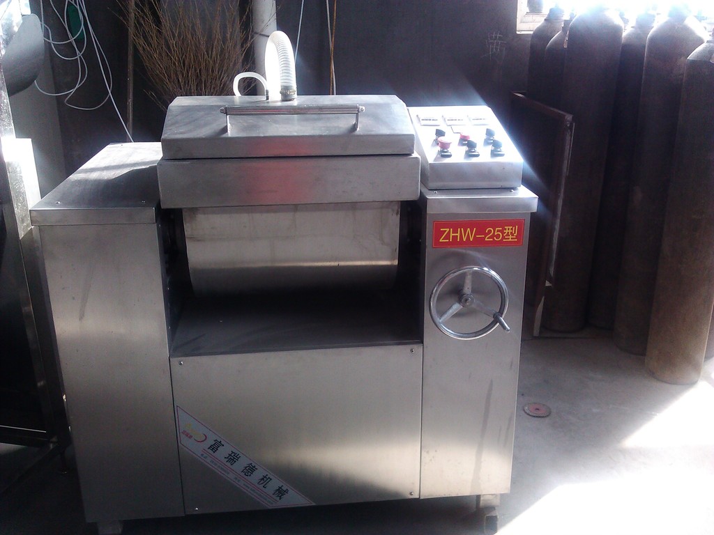 25公斤真空和面机是在原普通和面机的基础上引进国际先进技术水平而改进的新型和面机,使面粉(或其它粉状物料)在真空状态下搅拌,和好的面团具有无气泡、面筋质损失小、弹性好、面团吸收水充分,加工食品口感佳等特点。