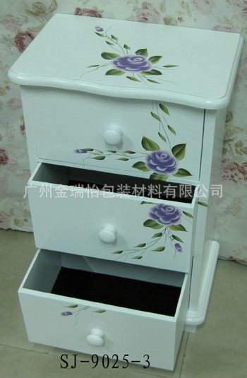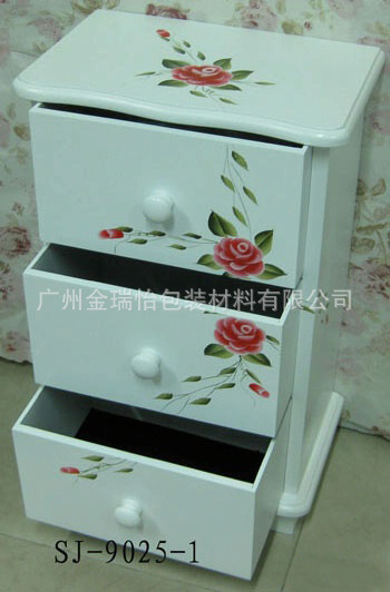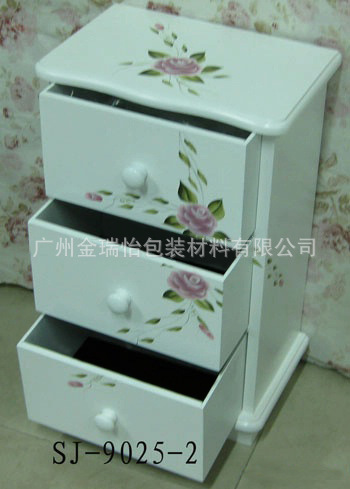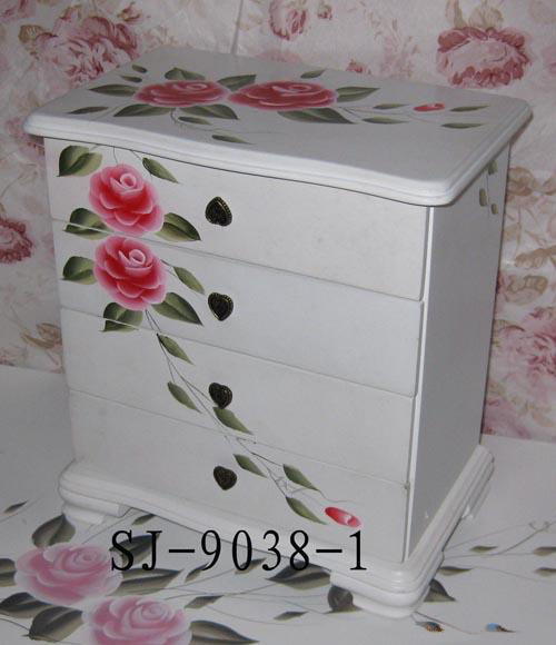 描述:都说红花配绿叶!此款四抽 绘花首饰盒加白色底再配上红花绿叶,在众多珠宝盒中脱颖而出。底座跟顶板为波浪形。底层抽屉格局分布,左边为“十”字格,右边海绵戒指位。