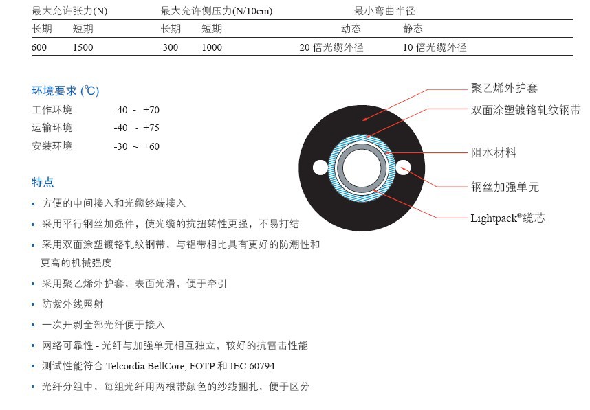 康宁光缆主要机械性能
