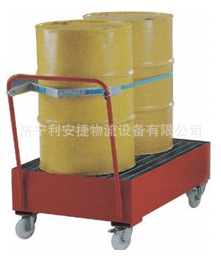 油桶存储车专业用于存放油桶,主要用于解决需要随时移动的工作需要,上部油桶支架采用倾斜设计,底部配安装高强度脚轮,移动方便。漏油网格采用高强度玻璃隔栅,承重可达200KG。