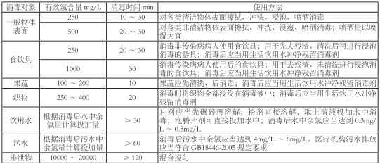 GB/T 5750.11-2006 对生活饮用水规定,出厂水余氯浓度应在 [0.3,4]mg/L,管网末梢饮用水应≥ 0.05mg/L,游泳池水应在 [0.2,1.0]mg/L,泳池浸脚消毒水应在 [5,10]mg/L。