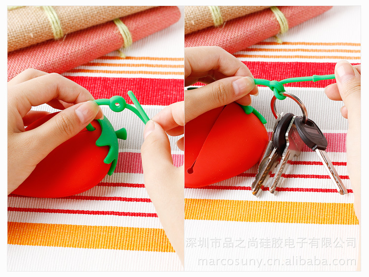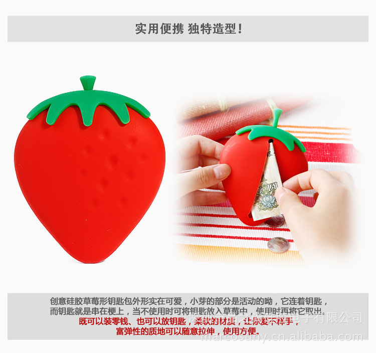 ---草莓形状,非常时尚,你值得拥有这款温暖的硅胶钥匙包,不仅整理了杂乱散落的钥匙、门卡,还保护了其他“易受伤害”的贵重物品,一举两得,超值拥有。 放在包包里,系在包包上,随意怎么搭配,都显时尚个性。