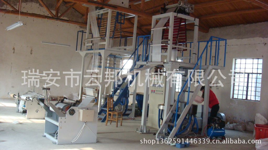 Its extruder, cylinder and screw rods are made of quality alloy steel, that have beennitrogen treatment and processed in a precision way. Hence it is sound in hardness, durable in corrosion resistance. The specially-designed screw is of sound quality in plasticizing, which helps increase the production capacity. It is applied to blowing the plastic films like low density polyethylene (LDPE), high density polyethylene (HDPE)and linear low density polyethylene(LLDPE). It is widely applied to producing the packing bags for foodstuff, clothing, rubbish bag and vest ones.