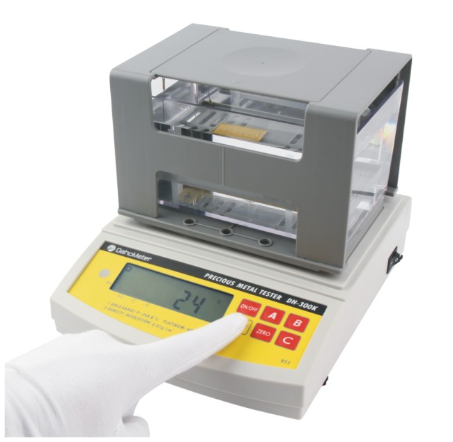 DH-300K将阿基米德原理与现在微电子技术相结合,采用德国进口传感器,通过对贵金属密度检测换算出贵金属纯度。该仪器广泛应用于珠宝银楼、典当公司、贵金属回收加工、首饰厂原材料检测等领域。可直接读取黄金K值、铂金PT值、密度值、纯度百分比。