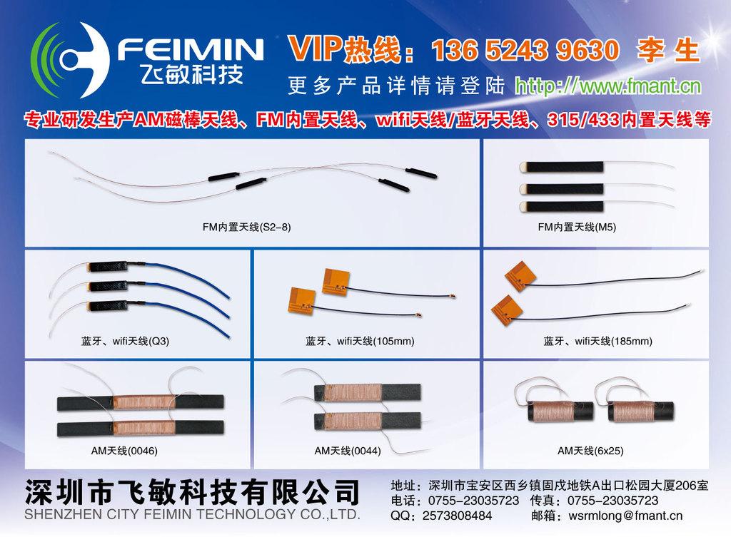 深圳是飞敏科技有限公司是一家专业从事内置天线设计与生产的企业。公司本着“客户,诚信至上”的原则,与深圳本地及其其他地区的多家大型通信产品企业建立了长期稳定的合作。产品的设计和性能也得到了客户和同行的一致好评。