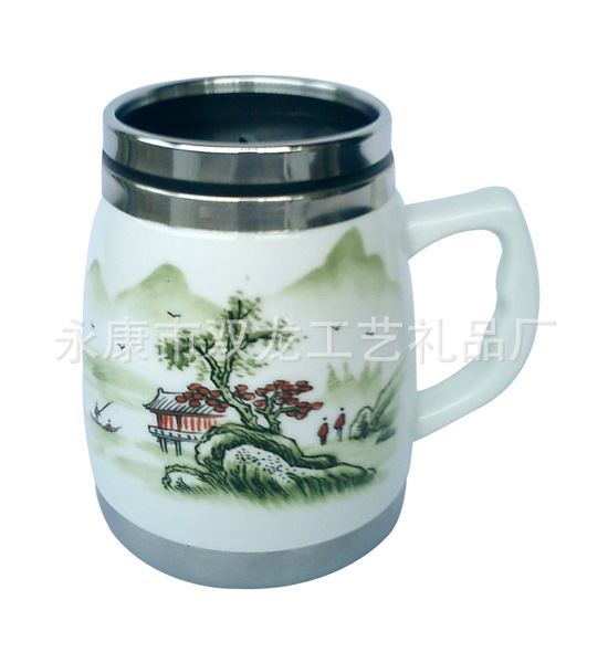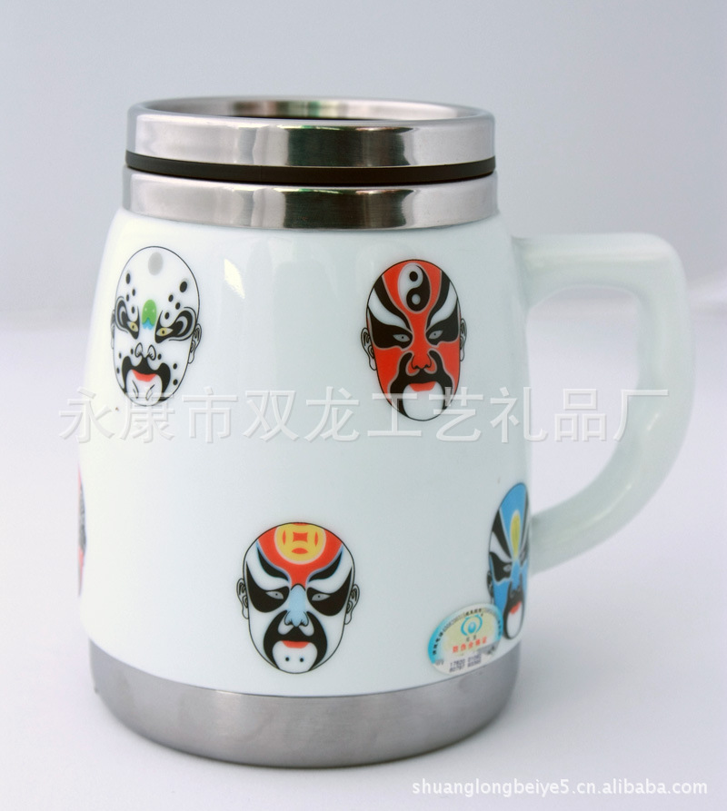 此高级不锈钢陶瓷杯内部是304不锈钢和外部是高级白瓷,采用中国古老精湛的陶瓷制作工艺和现代高新技术,陶瓷外壳,不锈钢内胆, 实用新型解决了原有陶瓷杯容易被碰碎的问题,同时也解决了不锈钢杯易传热烫手的问题,同时不会破坏原有陶瓷杯的美观。高雅时尚,工艺成熟,外壳可做漂亮LOGO,LOGO可按客户要求定做.新产品,新礼品.