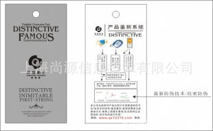 防伪查询方式:企业产品防伪技术应用支持,主要防伪技术有“800免费查询、400手机查询、9510特服号码查询、网站查询、查询及普通电话查询等多媒体防伪标贴。