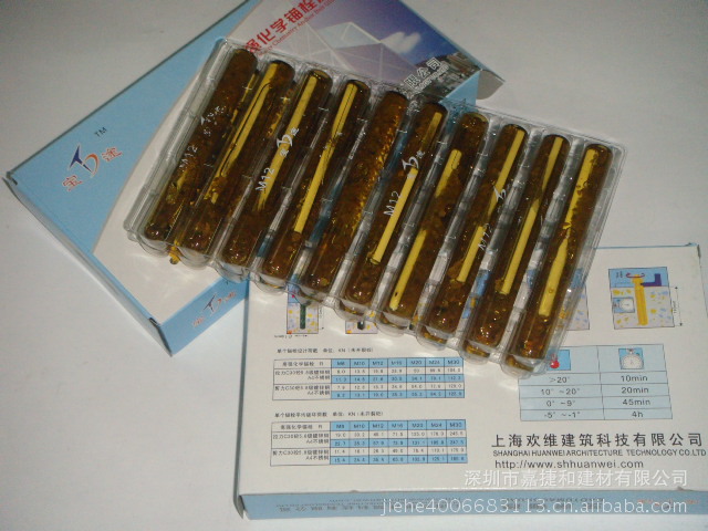 高强化学锚栓由化学制剂(玻璃管装)与金属杆体(优质碳素结构钢或不锈钢)组成。可用于各种幕墙、大理石干挂、钢结构安装,也可用于设备安装,公路、桥梁护栏安装、建筑物加固改造等场合。