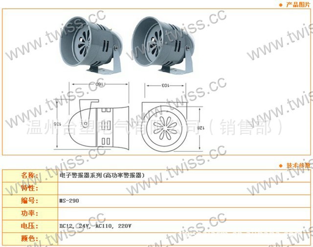 台塑twiss高功率马达(风螺)警报器MS-290(塑料)