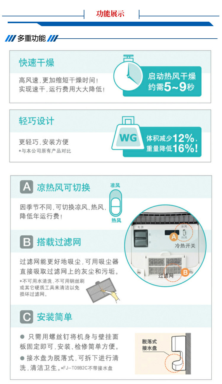 松下干手机FJ-T09A2C高速烘干接水盘全自动感应