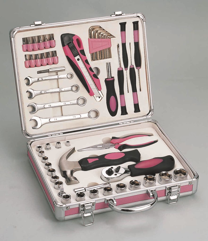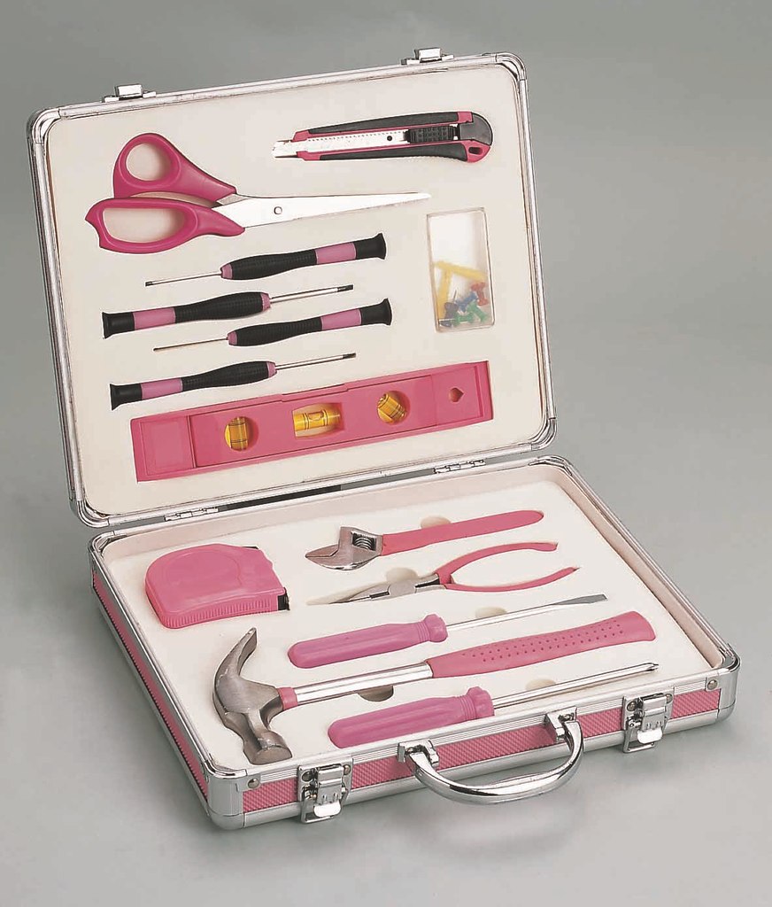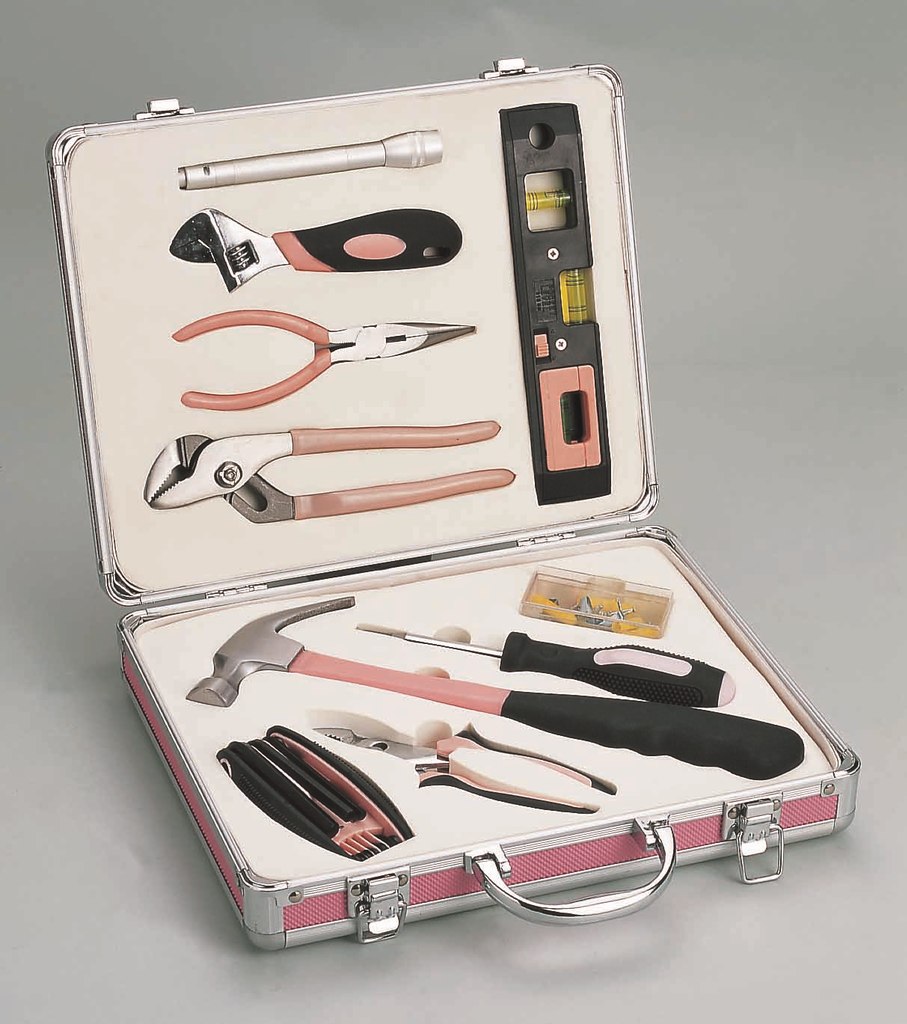供应粉红色铝箱礼品家用组套工具