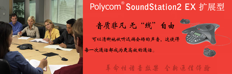 SoundStation2传送的卓越语音质量相当于SoundStation Premier的效果,其麦克风的灵敏度比获奖的SoundStation 提高了50%。与会者在3米之内以正常语调说话,可以清晰地收听远端会场的声音。——这使得每一次通话都成为更高效的通话。再加上扩展麦克风组成SoundStation 2 EX可增强拾音范围,以满足更大型会议室需求!
