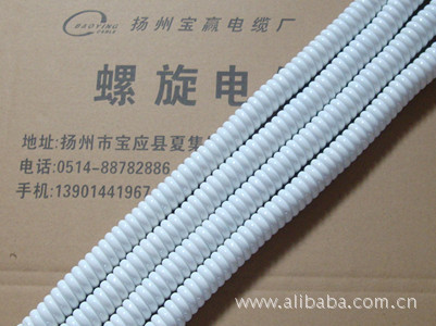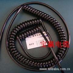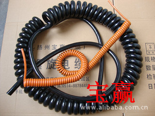 适用范围:用于额定交流电压450/750V或直流电压6V-1000V以下,需要来回上下移动的装配电路汇总接线,如电话、计算机、电子设备插件及汽车、拖车、弹簧连接线。螺旋电缆线 螺旋线产品特性:具有良好的柔韧性和弹性(伸长长度可达原弹簧长度3.5-4倍)。有良好的耐寒性,阻燃性,耐油性和耐磨性。可根据场合不同要求生产各类螺旋型弹簧线。螺旋电缆线 螺旋线导体结构:使用单股或多股铜丝(或镀锡铜丝)。螺旋电缆线 螺旋线绝缘材料:可采用聚氯乙烯,聚乙烯,聚丙烯或叫联聚乙烯及氟塑科,以满足不同场合的要求。螺旋电缆线 螺旋线护套材料:一般用聚氨酯弹性料。工作温度:根据客户要求,耐寒-65度;耐温80度、105度、125度。螺旋电缆线 螺旋线生产范围:标准截面:0.12~4平方米(特殊规格可根据客户要求生产)。螺旋电缆线 螺旋线电径芯数:1~37芯(特殊规格可根据客户要求生产)。螺旋电缆线 螺旋线弹簧长度:任意。