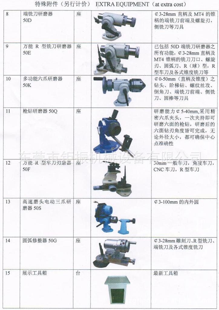 本机可根据要研磨的刀具来搭配各种配件,可磨各种立铣刀、端铣刀、R型铣刀、圆柱